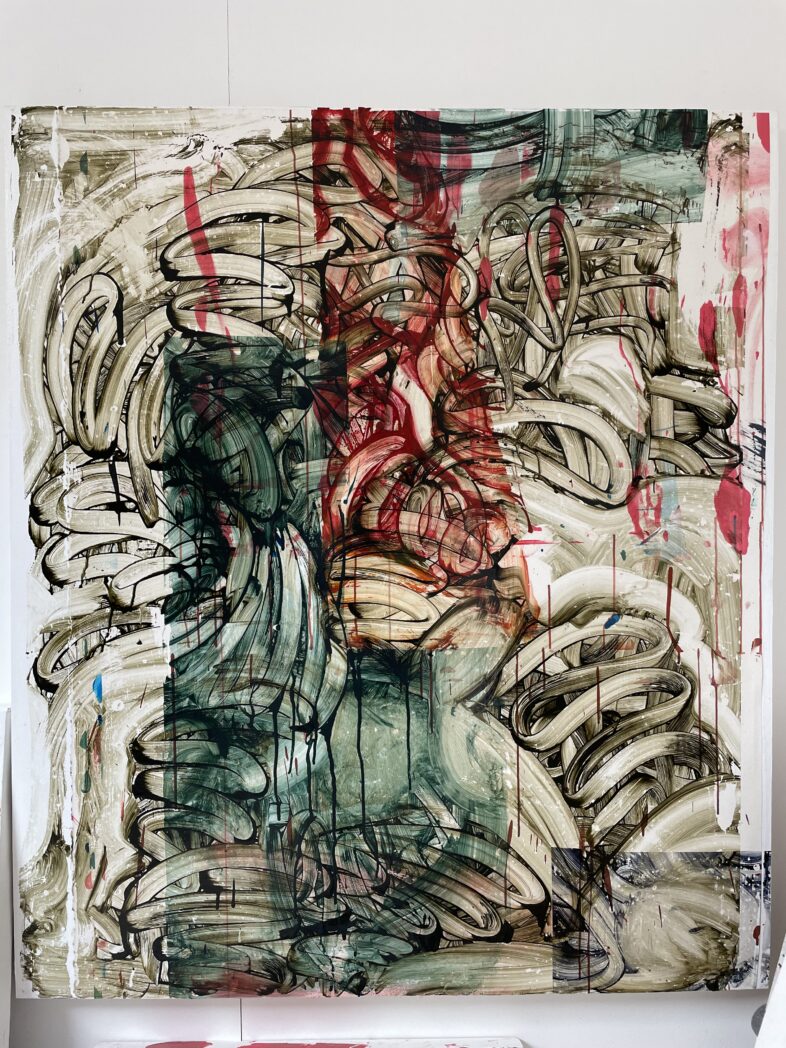 27 May 2024Acrylic and collage on canvas over panel. 122x105cm 21 September 2024Acrylic on canvas. 122 x 112cm